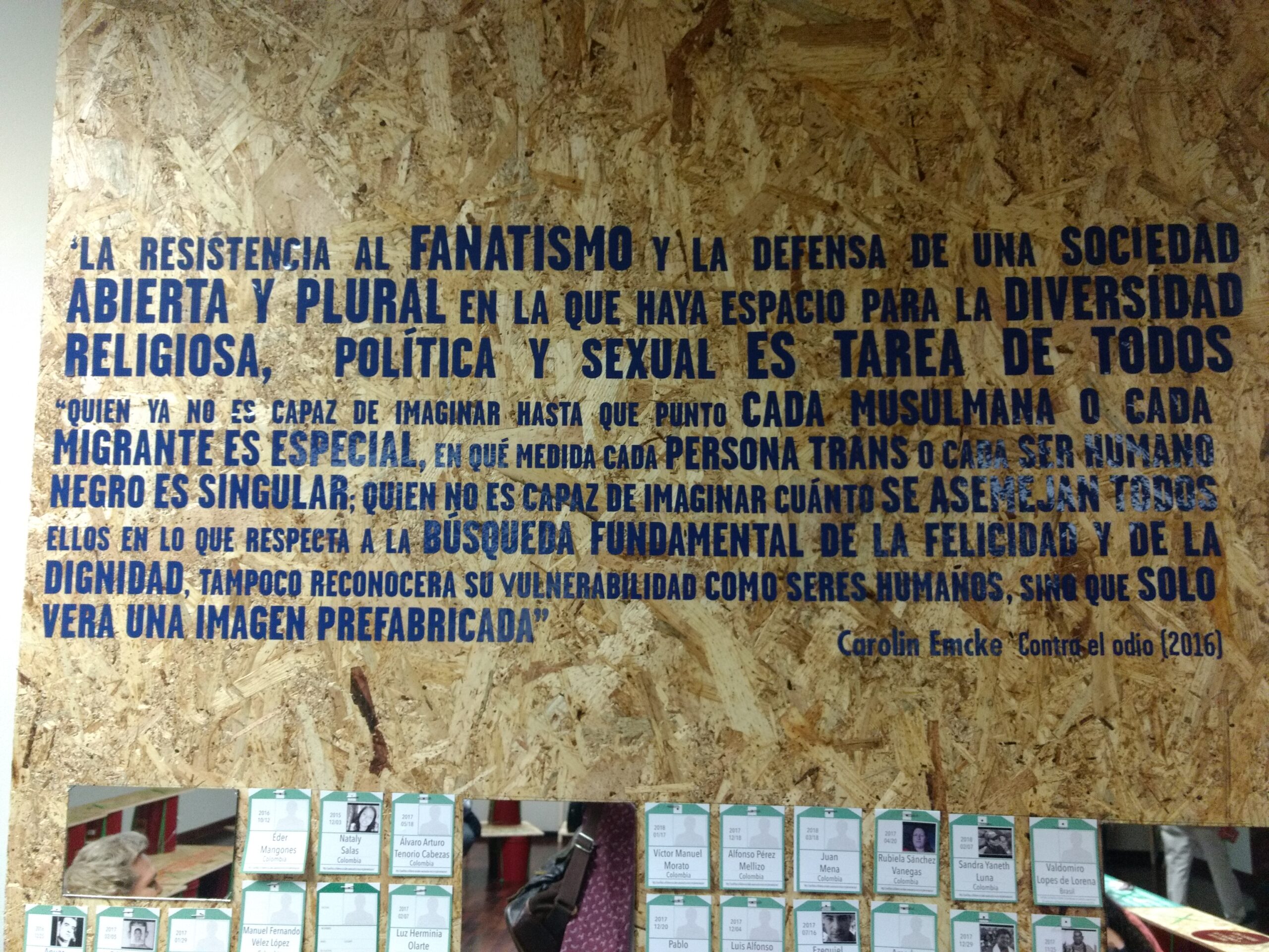 Pared dispuesta para que los asistentes comentaran con qué canción identifican su lucha